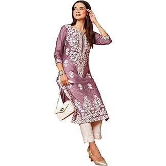 ANNI DESIGNER Women’s Cotton Blend Straight Chikankari Embroidered Kurta