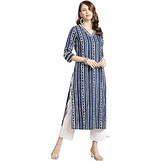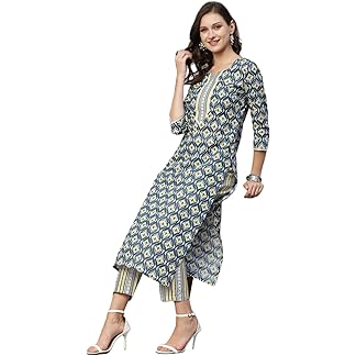 ANNI DESIGNER Women’s Cotton Blend Printed Straight Kurta with Pant