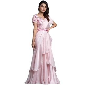 infabzon Ready To Wear Lehenga Saree & Belt Set For Women Bollywood Style Apple Organza Silk Fabric On Fully Stitched Embrodery Sequance Work