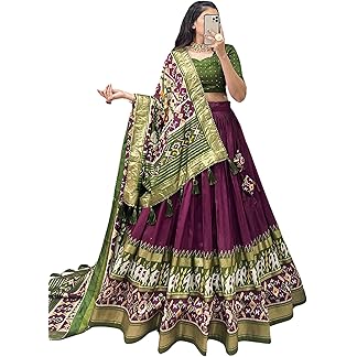 WELLY Women Tussar Silk With Patola Print And Foil Work Lehenga choli