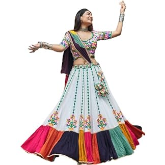 Captivating White Mirror Work Rayon Navratri Lehenga Choli