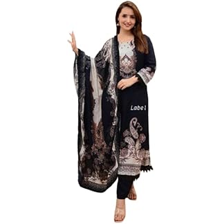 JS Online Designer Printed Muslin Regular Fit 3/4 Sleeve Lightweight Casual Wear Ethnic Kurta Set with Pant and Dupatta
