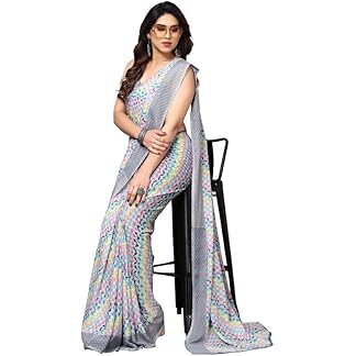 SIRIL Women’s Georgette Floral Print Geoegette Saree With Unstitched Blouse Piece