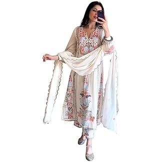 Omkar Tex’s Faux Georgette Embroidered White Kurta, Plazzo with Dupatta set||Readymade Women Salwar Suit For Wedding, Party, Evening, Casualet
