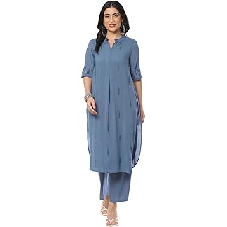 BIBA Women Blue LIVA Straight 2 Piece Set