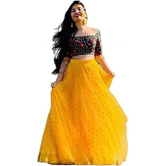 NPLASH FASHION Women’s Silk Semi Stitched Lehenga Choli (yellow bindu_Yellow_Free Size)