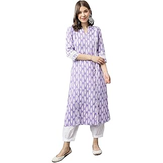 FIORRA Women’s Light Purple Cotton A-Line Kurta with Pant