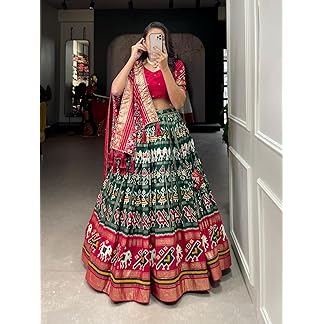 SD Collection Women Tussar Silk With Patola Print And Foil Work Semi Stitched Lehenga choli (GREEN5)