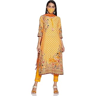 GoSriKi Women’s Cotton Blend Anarkali Printed Kurta with Pant & Dupatta