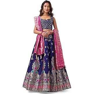 PURVAJA Women’s Jacquard Semi-Stitched Lehenga choli(Indra)