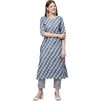 ANNI DESIGNER Women’s Cotton Blend Printed Straight Kurta with Pant