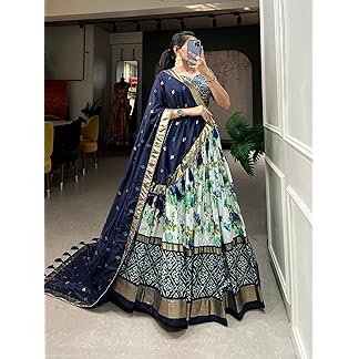 MAIRA FASHION Women’s Tussar Silk With Leheriya And Foil Print Lehenga choli Set (NAVYBLUE2)