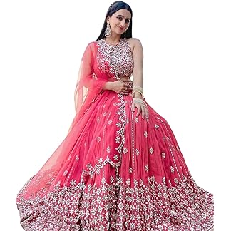 KEDARFAB Women’s Net Embroidery Lehenga Choli With Dupatta Set