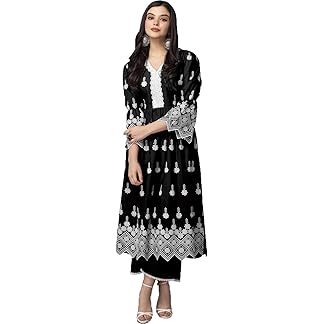 Bollyclues Women’s Rayon Embroidered Readymade Elegant Salwar Suit Set(Black-RA-01)