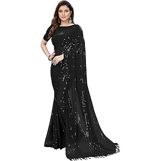 Pratham Blue Women’s Sequins Georgette Fancy Saree With Blouse Piece