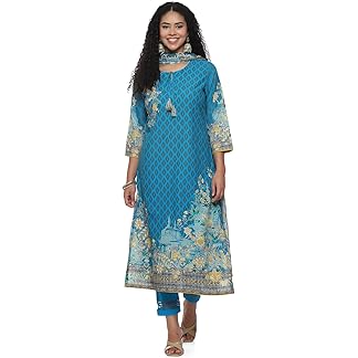 INDO ERA Women’s Cotton Yoke Design Straight Kurta Pant with Dupatta Set