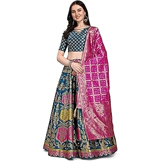 PURVAJA Women’s Jacquard Semi-Stitched Lehenga choli