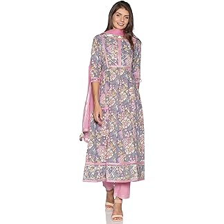 MEERA FAB Women’s Cotton Printed Anarkali Kurta with Palazzo & Dupatta Set
