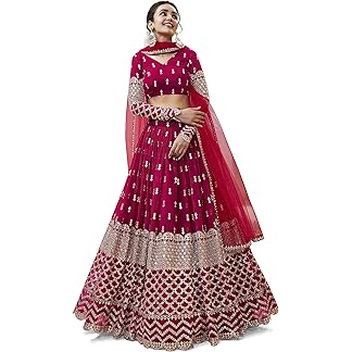 Zeel Clothing Women’s Sequins Zari Embroidered Georgette Semi-stitched Lehenga Choli With Dupatta (300-Wedding-Bridal–New-Stylish; Free Size)