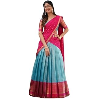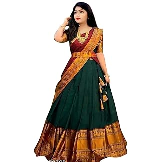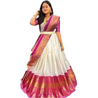 RENVAANI FASHION Women’s Indian Traditional Unstitched Kanjivaram Kanchipuram Silk Pure Zari Weaving Lehenga Choli Along With Dupatta Attach With Unstitch Blouse Piece, Half Saree (HT143)