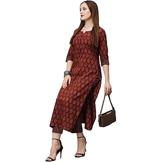 ANNI DESIGNER Women’s Cotton Blend Printed Straight Kurta with Pant