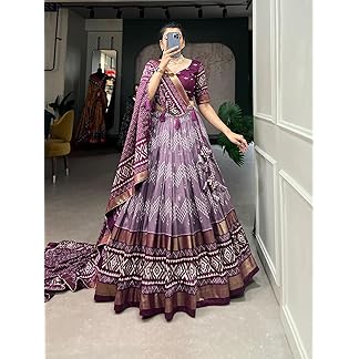 SHIVANSH EXPORT Women,s Tussar Silk With Leheriya And Foil Print Lehenga choli Set