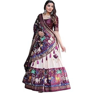 PURVAJA Women’s Jacquard Semi-Stitched Lehenga choli(Lihaaz)