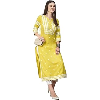 ANNI DESIGNER Women’s Cotton Blend Straight Chikankari Embroidered Kurta