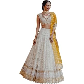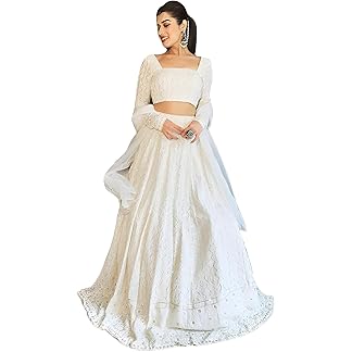 Zeel Clothing Women’s Organza Floral White Semi-Stitched Lehenga Choli (7611-Wedding-Floral-Lehenga-Latest, White)
