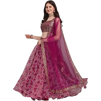 Fashion Basket Women’s Floral Organza Semi Stitched Lehenga Choli