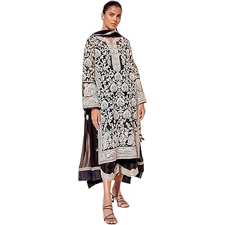 Bollyclues Women’s Georgette Embroidered Readymade Salwar Suit Set(Black_Heavy)