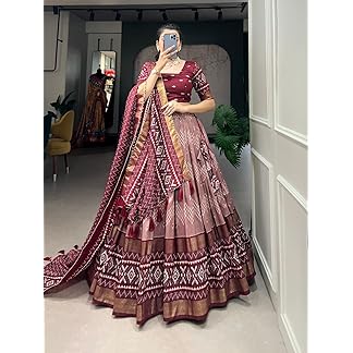 Women,s Tussar Silk With Leheriya And Foil Print Lehenga choli Set (MAROON)
