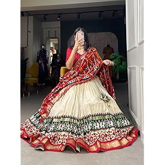 Sarathybiz Women’s Navratri Collection 2023 Dolla Silk Lehenga Choli Patola Print with Foil Work With Blouse Solid