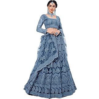 PATLANI Women Net Letest Design Chain Embroderied Work Woman S Flered Semi-Stitched Lehenga Choli.(Semi Stitched)
