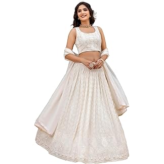 Zeel Clothing Women’s Organza Floral White Semi-Stitched Lehenga Choli (7611-Wedding-Floral-Lehenga-Latest, White)