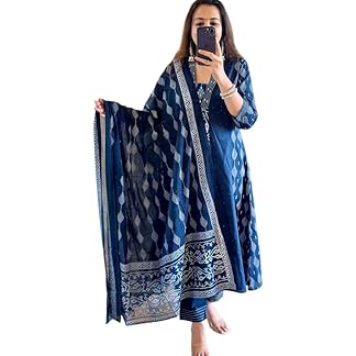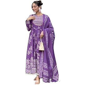 Rangnavi Women’s Cotton Anarkali Printed Kurta with Palazzo & Dupatta Set