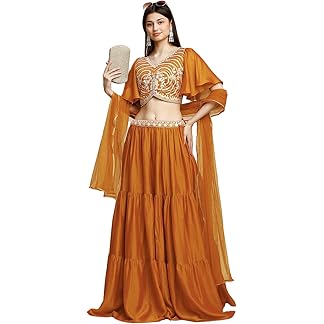 madhuram textiles womens’ Lehenga And Aliyacut Choli Vichitra Silk With Dupatta Net With Embroidery Work Set(M-2488 Orange)