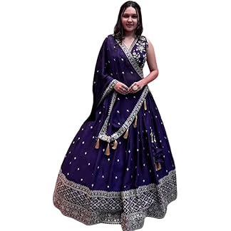 MODEMIX Traditional Wedding Lehenga, Royal Purple with Silver Embroidery, Tasselled Dupatta