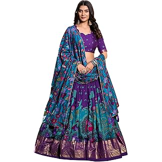 LooknBook Art Women’s Wedding Special Tussar Silk With Kalamkari Print Lehenga Choli