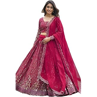 KEDARFAB Georgette Sequence Embroidery Lehenga Choli For Women | Wedding | Stylish | Festive | Lehenga For Women (Barbie)
