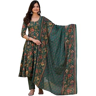 Arayna Women’s 100% Pure Cotton Anarkali Kurta Set with Pant & Dupatta | Embroidered Flared Kurta | Elegant Ethnic Suit