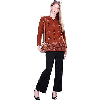 Rosary Women’s Girls Woollen Winter Wear Co-ord Set Short Kashmiri Printed Zari Work Phiran Ethnic Top Bell Bottom Pant With Pockets