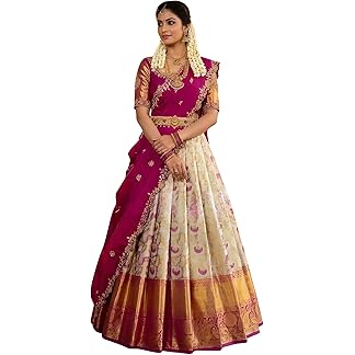 South Indian Traditional Jacquard Half & Half Saree for Women Unstitched Narayanpet Langa Voni Lehenga Style Half Saree Woven South Indian Wedding Ethnic Wear