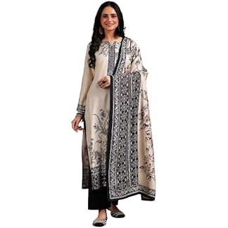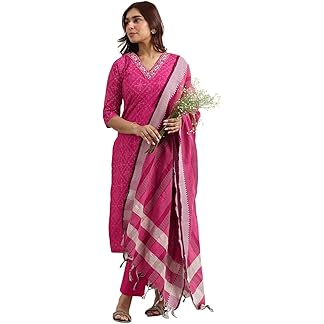 Libas Womens Printed Silk Blend Straight Kurta with Trousers and Dupatta
