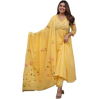 UPSARA FASHION Traditional Embroidered Rayon Kurta Set with Dupatta, Floral Design, Full Length