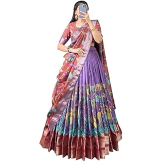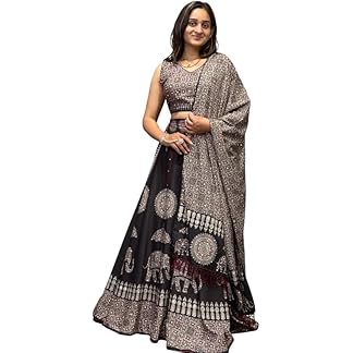HALFSLIVE Women’s Trending Designeer Tussar Silk Lehenga Choli Print with Foil Work With Unstitched Blouse Patola Print Adorned with Foil Work For Navrati || Wedding