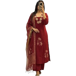 Sun Fashion And Lifestyle Kurta Sets for Woman | Kurti Set | Women’s 3 Piece Kurta Pant Dupatta Set | Chanderi Silk Kurta Woman | Elegant Suit for Women | Dupatta