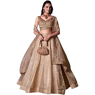 JIHU CULTURE Cream Gold Crush Silk Zari Embroidry Work Lehenga Choli For Wome’s