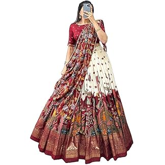 Jay Varudi Creation Women’s Tussar Silk Lehenga Choli Set | Patola Print with Foil Work | Unstitched Blouse | Designer Ethnic Wear for Navratri, Wedding, Festival & Party