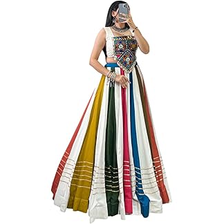 FabDiamond Women’s Stitched Lehenga Choli,Pure Rayon Lehenga with Sequins Lace, 5 Meter Flair, Canvas Inner UnStisted Blouse with Mirror Gamthi Work,Ideal for Garba, Wedding, Party